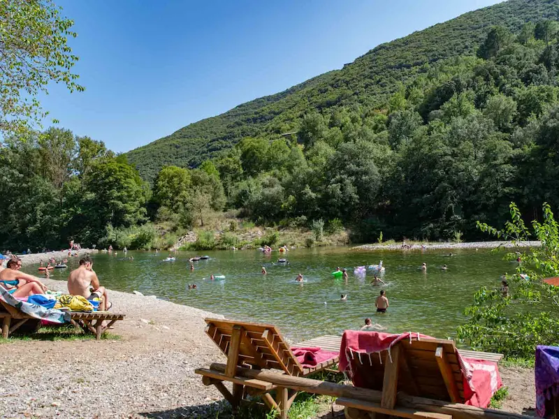 Pour une immersion totale en pleine nature, nous sommes également un camping en bord de rivière. Vous bénéficiez d'un accès privé et direct aux berges du Gardon. Cette plage privée exclusive vous permet de varier les plaisirs : baignade naturelle dans une eau pure, parties de pêche ou farniente absolu au son de l'eau, un luxe rare pour votre séjour dans le Sud de la France.
